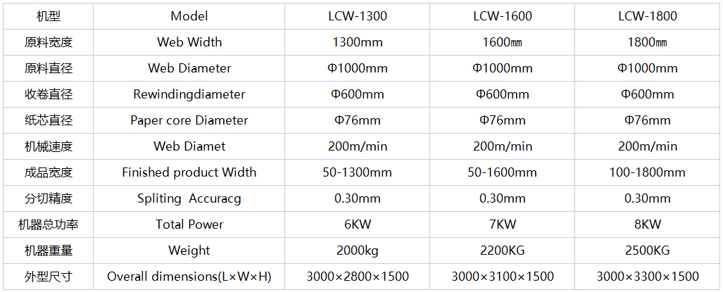 該機(jī)適用于PET、CPP、PE、PS、PVC及各種紙卷、無(wú)紡布的分條作業(yè)及復(fù)卷之用,是造紙、塑料及印刷包裝行業(yè)中的理想設(shè)備。